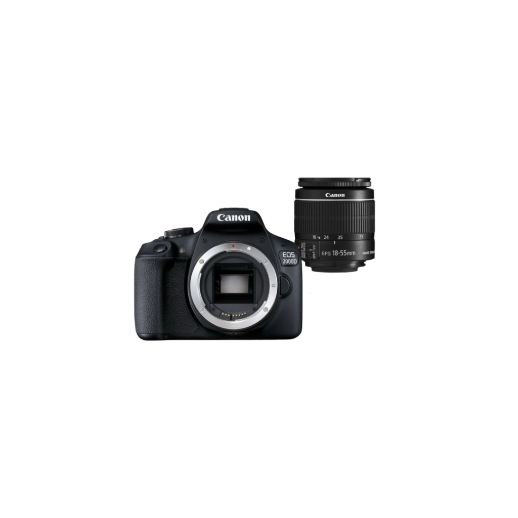 The Canon EOS 2000D is a simple and intuitive 24.1-megapixel DSLR that makes professional-looking photography accessible to everyone. Featuring a large APS-C sensor for beautiful background blur and excellent low-light performance, it includes built-in Wi-Fi and NFC for instant social sharing. The included 18-55mm IS III lens features an Optical Image Stabilizer to ensure sharp, shake-free images across a versatile zoom range.