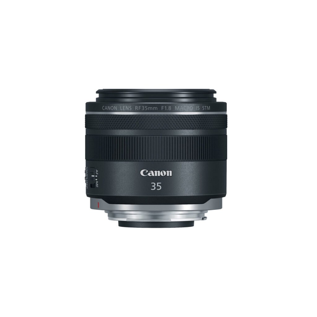 Feature Details Focal Length : 28mm (45mm equivalent on APS-C) Max Aperture : f/2.8 Lens Mount : Canon RF (Full-Frame & APS-C) Optical Design : 8 Elements in 6 Groups (3 PMo Aspherical) Aperture Blades : 7 (Rounded) Min. Focus Distance : 9.1 inches (0.23m) Filter Diameter : 55 mm Weight : ~120g (4.2 oz) Image Stabilization : No (Relies on camera IBIS)Canon RF 35mm f1.8 Macro IS STM Lens