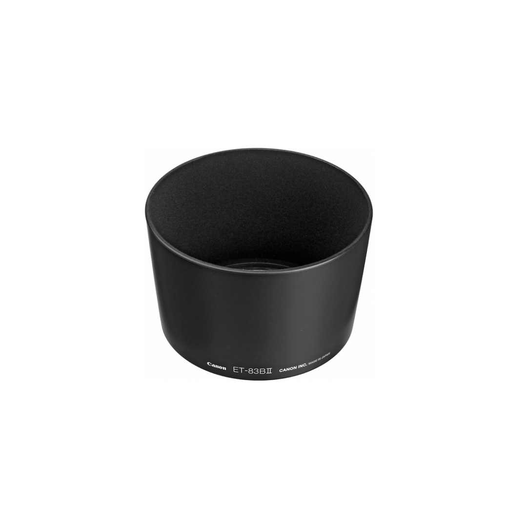 Often supplied with a lens hood (ET‑83B II), lens caps, and a soft case (LP1222).