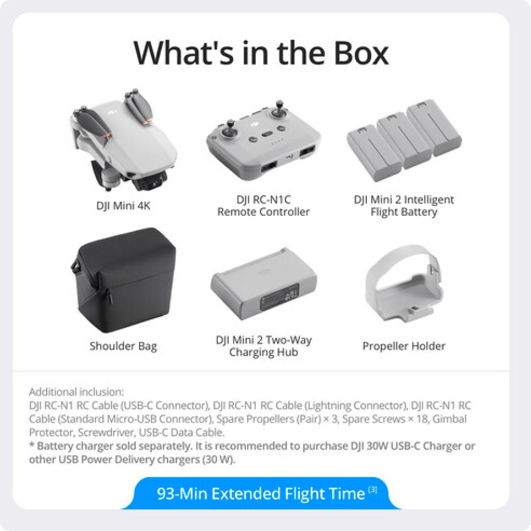 - Remote Control Options: Compatible with DJI RC, RC‑N1, or smartphone‑based controllers depending on bundle