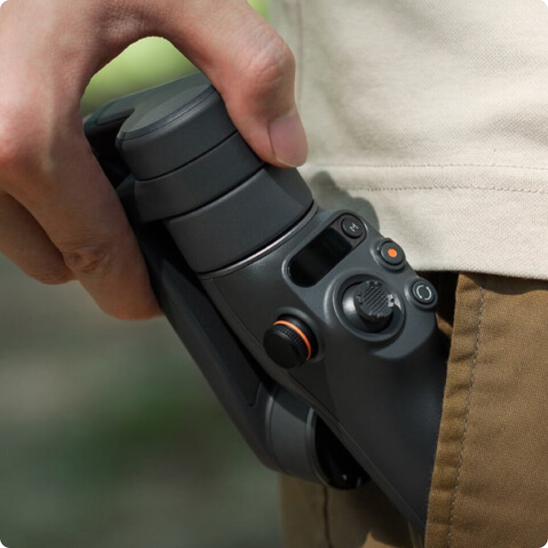 Its intuitive Quick Launch and magnetic phone clamp system make setup fast and seamless, while the ergonomic handle and tactile control wheel put video controls at your fingertips. With the DJI Mimo app integration, you can access creative templates, edit footage, and share directly to social media.