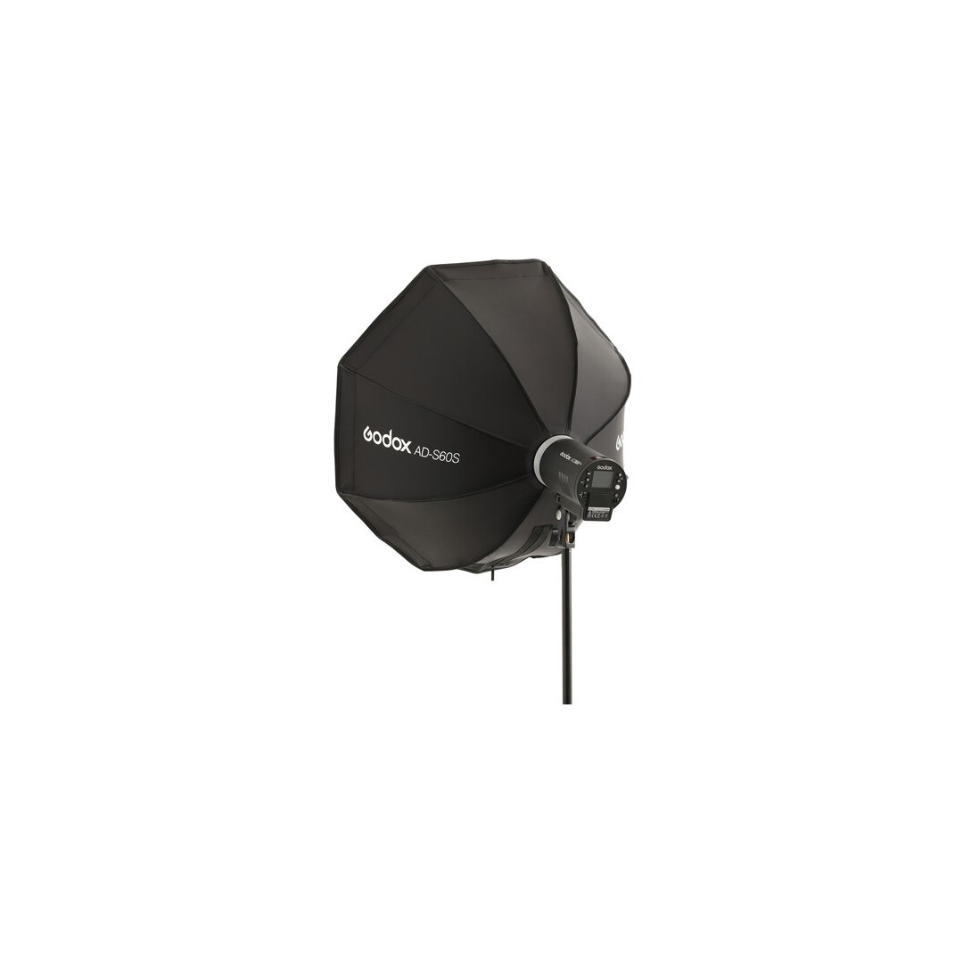 The Godox AD‑S60S Softbox is a portable octagonal softbox light modifier designed to deliver soft, flattering light with broad coverage — ideal for portrait photography, product shoots, studio setups, and on‑location work. Its 60 cm diameter and octagonal shape create a natural‑looking wraparound light with smooth shadow transitions and desirable catchlights in subjects’ eyes.