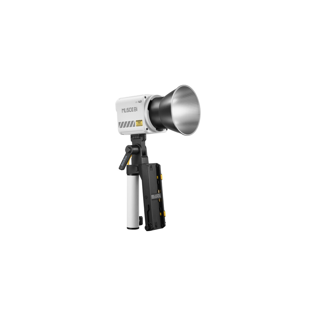 The Godox ML60IIBI Bi‑Color LED Monolight (with AK‑B01 Battery Handgrip Kit) is a compact and portable LED light tailored for photographers and videographers needing adjustable bi‑color output and battery mobility in a single unit. It features a Bowens accessory mount, high color accuracy, and a bi‑color range from warm to daylight, making it suitable for portrait, interview, and run‑and‑gun lighting scenarios. The included AK‑B01 battery handgrip lets you power the light using NP‑F batteries for true on‑location flexibility.